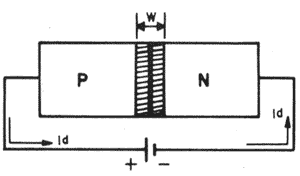 Os portadores do material do tipo P (electrões livres) conjugam-se com os do material tipo N (lacunas).