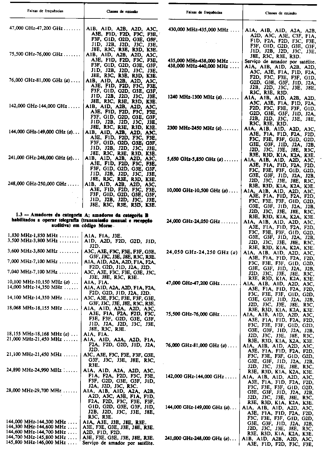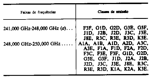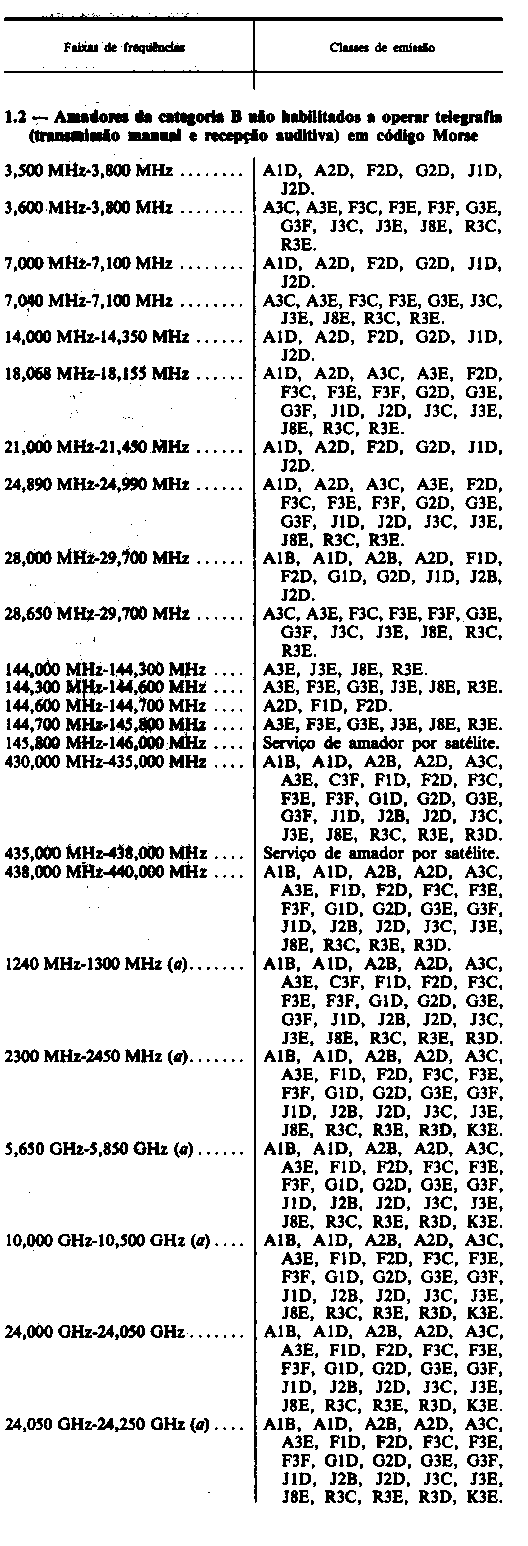 9.º Só são permitidas emissões em C3F com varrimento lento (SSTV,) .4, com varrimento normal nas faixas de frequências 430 MHz-440 MHz e 1240 MHz-1300 MHz.